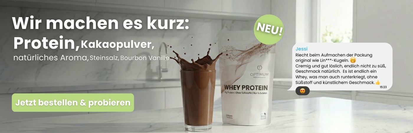 Ich bin wirklich begeistert vom Whey Protein von Optimum Performance! Der Geschmack ist super natürlich und überhaupt nicht künstlich oder übertrieben süß. Besonders überzeugt hat mich die cremige Konsistenz , egal ob im Shake oder im Porridge, es lässt sich richtig gut einrühren.